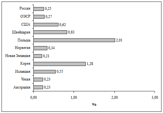| Удельный вес расходов на сельское хозяйство в ВВП, %