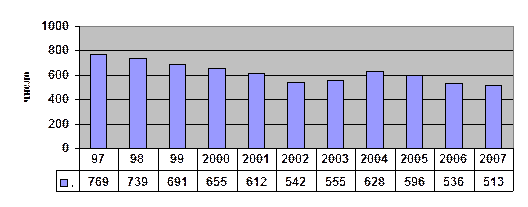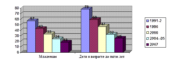 [73] Следует отметить, что с 1996 года данные НЦСЗ на 5,5 процентных пункта ниже данных, полученных по методике ВОЗ. Так, в соответствии с данными по методике НЦСЗ на 2007 год хроническое недоедание среди детей до пяти лет составило 23,1%.