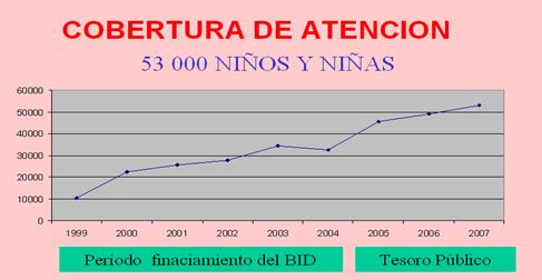 в 2006 году. 94% детей, получавших помощь по линии этой программы на протяжении как минимум шести месяцев, показывают удовлетворительные результаты развития в моторной, лично-социальной и языковой области. В ходе 2007 года основное внимание в рамках программы было перенесено на сельские районы, где охват увеличился на 35,8%, достигнув 12 664 детей в возрасте от шести месяцев до 3 лет