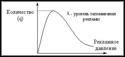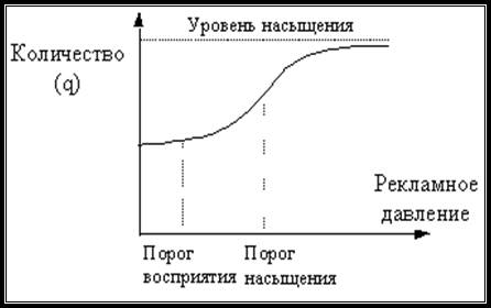 По горизонтальной оси мы будем откладывать количество произведенной рекламы (рекламное давление), а по вертикальной – уровень реакции потребителя (обозначим его буквой q