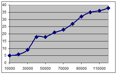 Во-первых, нам нужно понять, какие исходные данные у нас есть. Что мы можем сделать? Для начала попробовать разобраться, какие данные на какую ось мы наносим. Например, если на нижнюю ось нанесем число показов рекламных сообщений (предположим, мы можем определить, когда у нас был показан баннер, с точностью до секунды), а на другую – число продаж после соответствующего числа показов. Однако в этом случае погрешность будет слишком велика: трудно будет увидеть, после 14998-го или после 15093-го показа баннера была проведена покупка. Да нам и не нужна настолько точная информация.