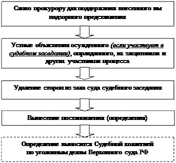 8. После удаления сторон из зала судебного заседания президиум верховного суда республики, краевого или областного суда, суда города федерального значения, суда автономной области и суда автономного округа, Президиум Верховного Суда Российской Федерации выносит постановление, а Судебная коллегия по уголовным делам Верховного Суда Российской Федерации — определение.