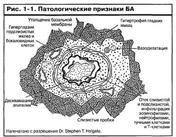 ния понимания молекулярных, клеточных и иммунологических механизмов, которые приводят к возникновению БА и определяют ее тяжесть и хроническое течение. Лучшее понимание явлений, которые инициируют, определяют и сохраняют развитие бронхиальной обструкции в ответ на воздействие как иммунологических, так и неиммунологических стимулов, может привести к выявлению новых целей заболевания. Кроме того, необходимы достоверные неинвазивные тесты, которые отражают воспалительную реакцию при БА. Важными приоритетами являются исследование взаимосвязи патологических изменений с показателями функции легких и улучшение понимания того, что определяет ремоделирование дыхательных путей. Многообещающие области исследования - изучение механизмов, регулирующих функцию рецепторов дыхательных путей, так как наблюдения показывают, что повреждение р-адренергических рецепторов может способствовать развитию БА и приводить к более тяжелому клиническому течению заболевания.