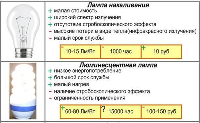 Сравнительная характеристика ламп накаливания и компактных люминесцентных ламп.