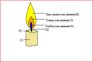 Если опыт проделать достаточно аккуратно, можно увидеть, что температура горящей свечи распределилась, следующим образом: зона 4 - 300°С, зона 5 - 1000°С, зона 6 - 1200°С.