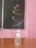 Из плотной бумаги мы вырезали спираль, растянули её немного и посадили на конец проволоки. Держа эту спираль над свечкой, мы увидели, что в восходящем потоке воздуха змейка будет вращаться.