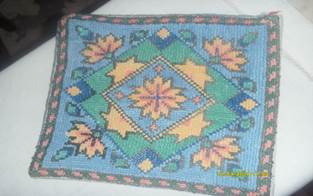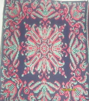 Вышивка - один из древнейших и популярных видов женского изобразительного искусства. По мнению профессора Н.Воробьева, этот вид искусства был связан с затворничеством женщин, которые редко выходили из дому и свой досуг использовали для рукоделия. Вышивать умели молодые и старые женщины всех социальных прослоек города и деревни. Мастерицы долгими зимними вечерами создавали нарядные и жизнерадостные узоры с применением разнообразных мотивов и цветочных сочетаний. В отличие от русских, украинцев, мари и других народов татары не применяли вышивку в одежде, но украшали предметы бытового назначения: полотенца, салфетки, скатерти, покрывала и оконные занавески, намазлыки (коврики для молитв)( Приложение 1). Расшивалась и обувь – сапожки ( ичиги), туфли ( Приложение 2), а также головные уборы – калфаки, калфачки, эрпеки (головные покрывала), тюбитейки. В фондах городского музея имеются два женских головных убора - калфаки. Один расшит жемчугом по синему бархату ( АКМ о.ф. № 15868, ВТ № 446). Передала его Биктимирова Назифа. Калфак расшивала еще ее мама в начале 20 века. Второй калфак расшит жемчугом по коричневому бархату (АКМ о.ф. № 3187, ВТ № 1090). Принадлежал он Гарифьяновой Зульфии, 1897 г.р., репрессированные из Башкирии в 1931 году. Передала его, ее внучка Позднеева Земфира (Приложение 3 ). Для изготовления мужских и женских головных уборов использовался вельвет и бархат. В украшениях головных уборов применялся цветной и белый бисер, а также поддельный жемчуг. Расшивка бисером и поддельным жемчугом велась как по контуру, так и в заполнении узоров. Наиболее богато расшитые калфаки, тюбитейки украшались витыми металлическими спиралями, золотой бахрамой, кистями, блестками. Узоры, используемые в тамбурной и золотошвейной вышивках, отличаются большим разнообразием мотивов и обилием их вариаций. Узоры имеют четкость и контурность. Тамбурные узоры в вышивках татар оказали значительное влияние на орнамент башкир, чувашей, удмуртов и узбеков. В женских платьях иногда расшивались оборки. Большая часть этих вещей связана с оформлением интерьера. Обстановка и убранство татарского дома имело ряд особенностей. Дом не принято было делить на комнаты, а также загружать лишней мебелью, поэтому появились искусно вышитые занавески и пологи. Особенно красочным дом становился во время свадебных торжеств - все украшалось вышитыми и ткаными изделиями новобрачной. Этот обычай, демонстрирующий трудолюбие и мастерство невесты, жив и сейчас в некоторых сельских местностях. Традиции народной вышивки сохраняются на селе также в связи с праздником сабантуй - молодые снохи дарят свои изделия победителям спортивных состязаний. Вышивка делалась обычно на ярком насыщенном материале - зеленом, желтом, фиолетовом, бордо. Вышивали крученым шелком, позолоченным или посеребряным шнуром, бисером, жемчугом. Большое значение уделялось орнаменту, который состоял из геометрических и растительных мотивов. В композиции цветущего сада, создаваемого мастерицами, можно было узнать красные маки и желтоглазые ромашки, тюльпаны и анютины глазки. Особой красотой славились казанские полотенца, вышитые тамбуром серебряно-золотой нитью по белому шелку. Широко распространено было также и узорное ткачество, также связанное с бытом и носившее характер домашнего ремесла. Орнамент обнаружив
