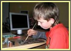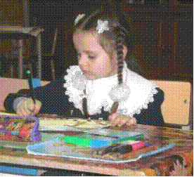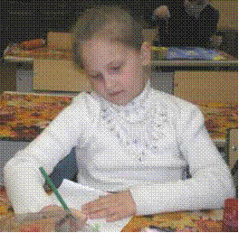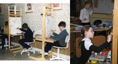 Войдите в кабинет изобразительного искусства.. В нем нет парт - есть специальные станки для занятий искусством- «мольберты». Когда ребенок сидит за таким станком, учителю легче формировать его правильную осанку. Прямая спина- прямая рука. Большой лист на вертикали планшета. Юные художники не боятся больших листов, они уверенно и спокойно выполняют все рекомендации учителя. Им интересно в кабинете, потому что он не такой как все. На стенах висят красочные детские рисунки в рамах , на застекленных полках- белоснежные гипсовые орнаменты , удивительные веселые озорные матрешки и свистульки, много разных кувшинов и вазочек. А на большом столе учителя- затейливые детские поделки. На рабочих местах детей коробки с гуашью и кисти. Кисть опускается в воду, затем легко движется по краске и на лист. Вот оно- первое маленькое чудо! Здесь рождается художник! Происходит обучение законам изобразительного искусства……
