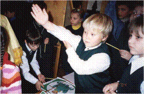 Широкий простор для эстетического воспитания открывает внеклассная работа. Стало хорошей традицией гимназии для учащихся начальной школы проводить в кабинете детские творческие праздники «Посвящение в художники», «Путешествие в страну Цветляндию» , а для родителей и детей проводить «мастер- классы» по освоению новых художественных техник.