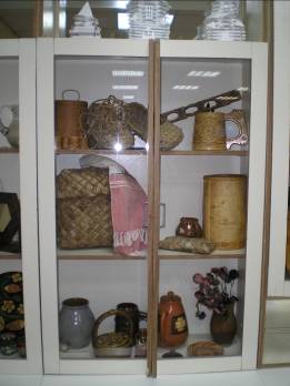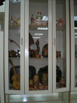В натурно-демонстрационном фонде кабинета представлены изделия русских народных промыслов : гжельская керамика с подглазурной кобальтовой росписью, жостовские подносы, хохломская посуда .Богато представлены русская народная игрушка : дымковская, полховско - майдановская, филимоновская и каргопольская. Большой ценностью кабинета следует считать коллекцию предметов русского народного быта, таких как плетеные лапти, короба, прялки, самовары, вышитые полотенца ,берестяные туеса , бурачки и другую крестьянскую утварь.