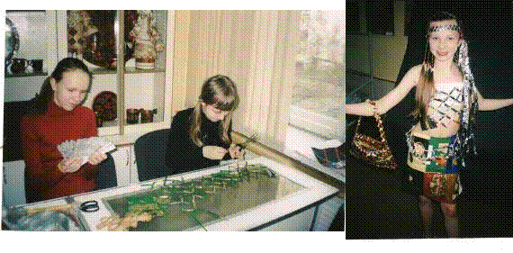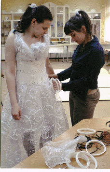 Учащиеся старших классов на кружковых занятиях творческой мастерской «Силуэт» занимаются графическим и предметным дизайном, конструированием и моделированием одежды из самых «нетрадиционных материалов»: сетки и пленки, пластмассовой упаковки, бумажных фантиков и т.д.