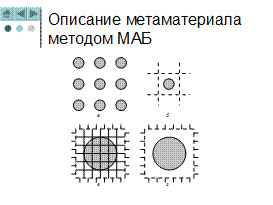 Одной из основных проблем в теории ММ является проблема их гомогенизации. Процедура гомогенизации вводит эффективные материальные параметры (ЭМП) дискретных сред как результат более или менее точного усреднения уравнений Максвелла для истинных (микроскопических) полей и поляризаций, при котором поляризация частиц заменяется на поляризацию, непрерывно распределенную в среде. Гомогенизация имеет смысл, если ее результат (ЭМП) можно использовать для решения краевых задач электродинамики, заменяя таким образом дискретный массив рассеивающих частиц на образец непрерывной среды.