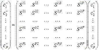 По своей сути подлежащая решению задача относится к дифракционным. Действительно, в каком-то рабочем режиме по внешним каналам (через входы 1, 2, ...) к волноводному устройству приходят волны, которые фигурируют как заданные, и надо определить «отклик» устройства в виде волн, уходящих от него по тем же каналам. В этом случае имеем соотношение: