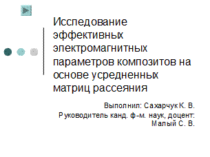«Информационные технологии для расчета эффективных матриц рассеяния метаматериалов»