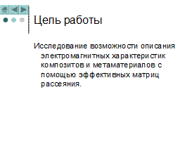 1. Исследование современных методов описания электромагнитных характеристик метаматериалов;