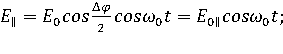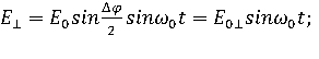 где определяется формулой (10). Отсюда, пренебрегая постоянной фазовой задержкой , получаем для составляющих вектора на выходе кристалла, параллельных и перпендикулярных исходному направлению , следующие формулы: