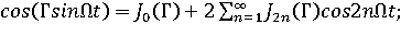 Следует обратить внимание на сходство спектральных распределений излучения с фазовой временной модуляцией и пространственного распределения поля в зоне Фраунгофера при дифракции на фазовой гармонической решетке. Такая пространственная фазовая модуляция в практикуме реализуется при дифракции света на ультразвуковой волне в режиме тонкой решетки. Распределение пространственных частот при этом беспечивается их дисперсией при распространении в свободном пространстве. Вблизи от решетки, где пространственные составляющие спектра еще не успели существенно сместиться, распределение интенсивности света не отличается от исходного равномерного распределения. Для схемы нашей работы это соответствует случаю регистрации фотодетектором 8 излучения, не разложенного в спектр (до интерферометра). В работе можно убедиться, что интенсивность излучения с фазовой модуляцией не содержит переменной составляющей.