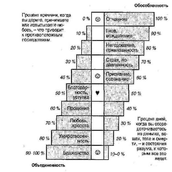 чувства отделенности человека. Это состояние очищает разум от суматохи и создает огромное внутреннее спокойствие, не ограниченное страхом или желанием обороняться; освобождает человека, чтобы он мог действовать с позиции естественного чувства любви, а не самозащиты. Духовное сознание работает не для