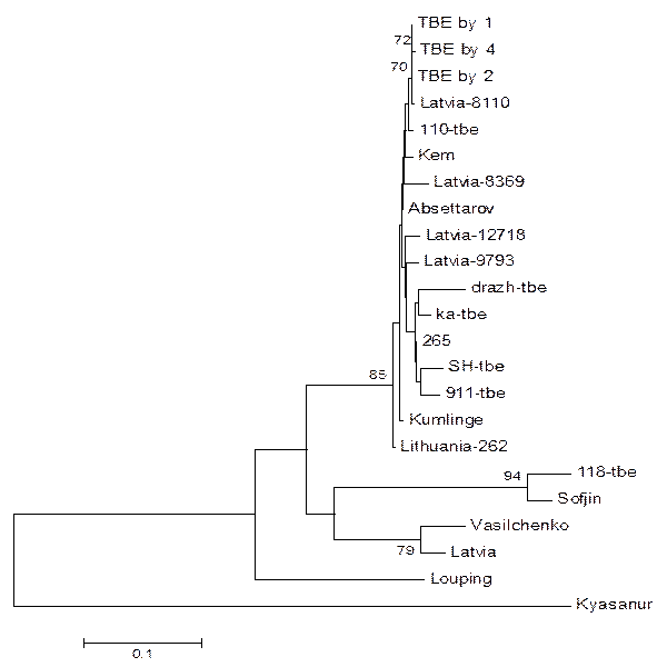 2.1 Построение дендрограммы штаммов вируса клещевого энцефалита, выделенных на территории Беларуси и взятых из компьютерного банка данных Gen Bank. 12