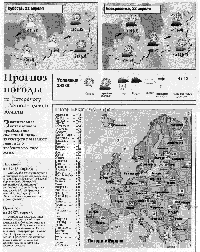 Отличным образцом инфографики может служить эта карта погоды из санкт-петербургской газеты “Cеверная столица”. Такие карты наиболее популярны в газетах Западной Европы и США. Они обеспечивают огромную информацию на небольшом газетном пространстве. Другой вид быстро создаваемой инфографики - это карты, показывающие какое-либо событие. Карты могут быть разного размера большие или совсем маленькие, которые размещают в колонке текста.