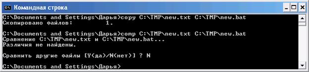 f. comp С:\Tmp\new.txt C:\Tmp\new.bat –