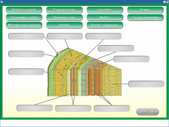 3. Актуализация знаний о строении стебля (индивидуальная, парная или коллективная работа) с использованием тренажера.