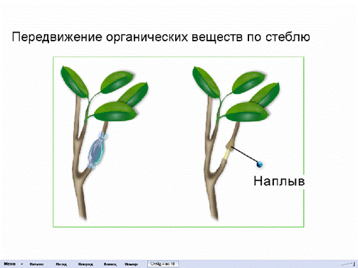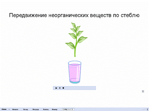 4.2 Самостоятельная работа «Транспорт веществ в растении» (просмотр опытов «Передвижение растворов по стеблю», «Передвижение органических веществ по стеблю»)