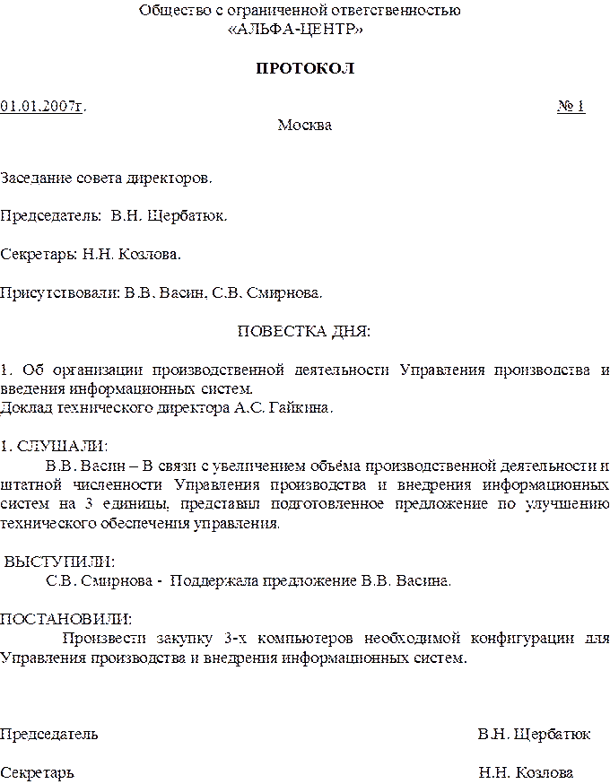 5. Организационный документ.