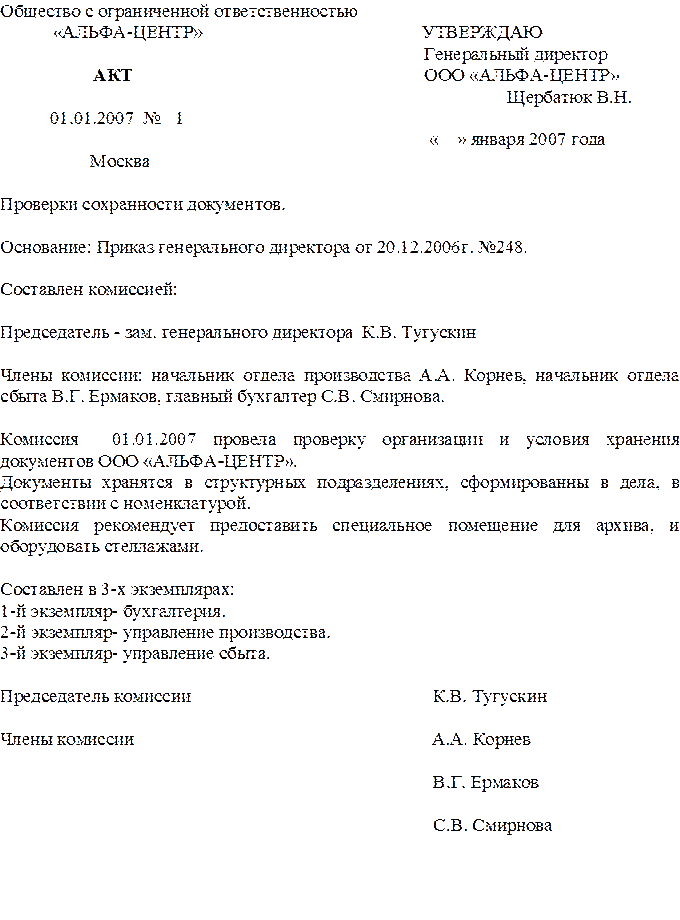 ООО «АЛЬФА-ЦЕНТР», ____________________ Тугускин К.В..
