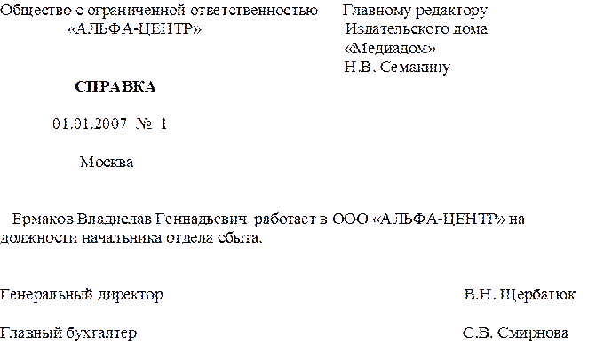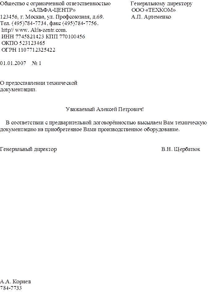 2. Общий бланк организации с угловым расположением реквизитов.