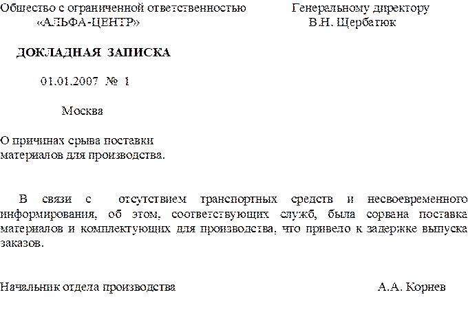 10. Докладная записка.
