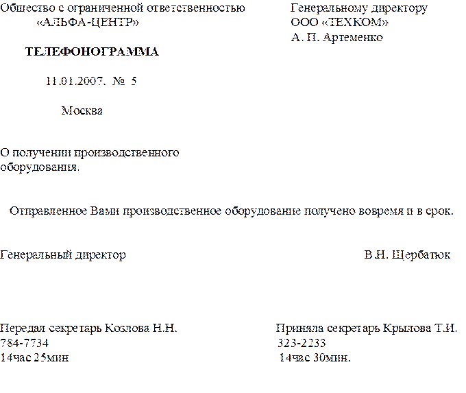 12. Телефонограмма.