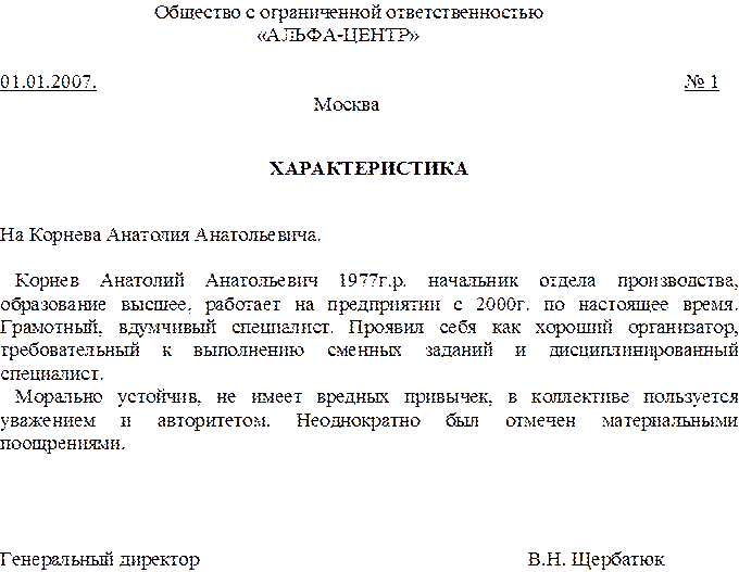 13. Характеристика.