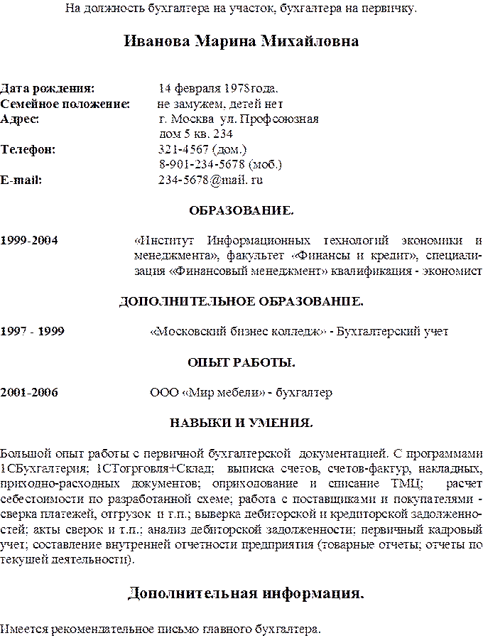 1.4. На должность Бухгалтера назначается лицо, имеющее: