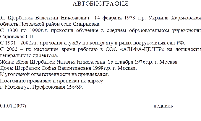 личная подпись