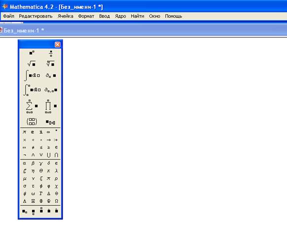 Однако, сделав шаг назад, упомянутая фирма одновременно сделала два шага вперед — она ввела выбираемые пользователем и перемещаемые по экрану в любое место инструментальные палитры со множеством пиктограмм ввода математических символов, функций и команд управления системой. Они выводятся с помощью меню Файл | Палитры.