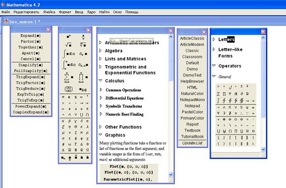 Рис. 2 Инструментальные палитры системы Mathematica 4