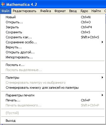 Часть команд может быть в данный момент невыполнима — например, нельзя вычислить значение выражения, если его самого нет в окне редактирования или если ячейка с ним не выделена. Названия таких команд выделяются характерным серым расплывчатым шрифтом. Четкий шрифт, напротив, характерен для тех команд, которые в данный момент могут исполняться. Управление главным меню самое обычное.