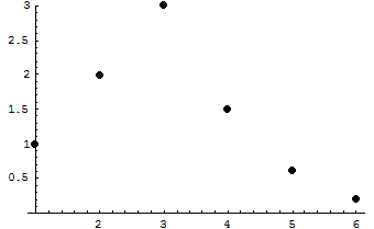 Часто возникает необходимость построения графика по точкам. Это обеспечивает встроенная в ядро графическая функция ListPlot: