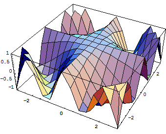 Пример применения функции ListPlotSD показан на рис. 9. График построен по данным таблицы tS, формирующей значения аппликат поверхности, которая описывается функцией cos(xy).