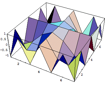 Часто трехмерная поверхность задается массивом своих высот (аппликат). Для построения графика в этом случае используется графическая функция ListPlotSD:
