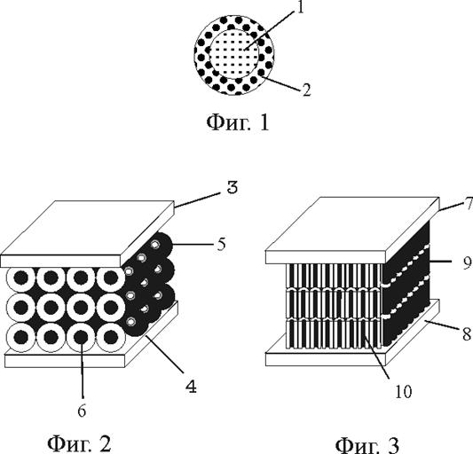 В других вариантах также множество кластеров, выполненных в виде полости с оболочкой из туннельно прозрачного слоя должны контактировать по крайней мере в двух точках полости с соседними кластерами, образуя пеноподобный материал с открытыми порами. Причем оболочка должна быть выполнена из полупроводники или из диэлектрика, или из ВМОМ, а поры могут быть заполнены или газом, или полупроводником, или диэлектриком, с отличными от материала оболочки свойствами.