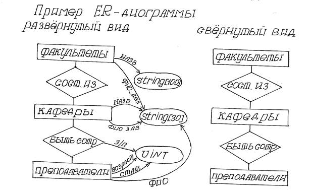 Таким образом, схема базы данных в ER – модели представляет собой множество множеств сущностей с определенным для каждого из них конечного непустого множества атрибутов и множество множеств связей, для каждого из которых определено конечное множество атрибутов, а также упорядоченный набор множеств сущностей, на которых строятся связи и для каждой из которых может быть определена роль.