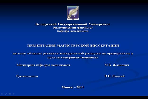 ПРЕЗЕНТАЦИЯ МАГИСТРЕСКОЙ ДИССЕРТАЦИИ