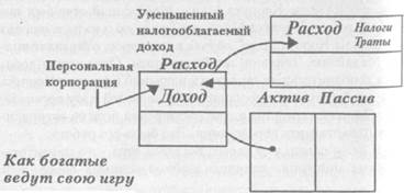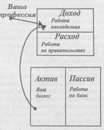 Богатый отец говорил: «Ключ к становлению богатым — это умение конвертировать заработанный доход в пассивный доход и/или доход портфолио, как можно быстрее. На заработанный доход налоги самые высокие. Пассивный' доход наименее обложен налогами. Это еще одна причина, почему вы хотите, чтобы ваши деньги усердно работали на вас. Правительство больше облагает налогами заработанный доход, чем доход, где ваши деньги усердно работают на вас».