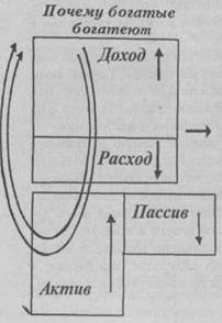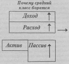 — Если вы посмотрите на жизнь средне образованных, много работающих людей, — начал Роберт, — то увидите, что каждый человек идет одинаковой дорогой. Ребенок рождается, идете школу. Гордые родители счастливы, потому что их ребенок прекрасно учиться, имеет несомненные шансы на хорошее образование, и его принимают на учебу в колледж. По окончании, может быть, получает научную степень, затем действует как запрограммированный: ищет гарантированно безопасную работу или карьеру. Работая, имея деньги, общается с другими людьми, находит себе пару, затем следуют свидания, а иногда и женитьба. Жизнь семейных прекрасна, так как оба работают. Есть два дохода. Они чувствуют себя успешными людьми, их ждет яркое будущее, и они решают купить дом, машину, телевизор, ездить на отдых, завести детей. Наступает счастливое время. Растет потребность в; средствах. Счастливая пара решает, что их карьеры жизненно важны, начинают сильнее вкалывать, ища продвижения по службе и подъема доходов. Рождаются дети, и появляется потребность в большом доме. Люди работают все больше, становятся хорошими работниками, пользуются признанием. Они (снова) учатся, чтобы получить больше специализированных знаний и зарабатывать больше денег. Возможно, берутся за вторую работу. Их доходы идут вверх, но растут и налоги, которые они платят, растет сумма налогов за новый большой дом, налоги на социальное обеспечение и другие налоги. Люди удивляются, вроде получают нормально, а деньги, как в песок, уходят. Они покупают какие-то государственные облигации, товары на свою кредитную карточку. И вот детям уже 5-6 лет и нужда экономить на колледж растет, а параллельно — и необходимость откладывать деньги на старость.