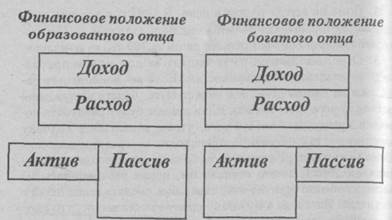 Он был прав. Ему были нужны новые ответы. Советы моих родителей могли работать на людей, рожденных до 1945 года, но они же могли быть катастрофическими для тех, кто родился в этом быстро меняющимся мире после. Я уже не могла легко говорить со своими детьми: «Иди в школу, получай хорошее образование и ищи работу, дающую безопасность и обеспеченность». Я знала, что мне следовало искать новые пути, чтобы руководить образованием своих детей. Как мать, а так же как бухгалтер-эксперт, я была озабочена прорехами в финансовом образовании наших детей, проистекавшими из школы. Много современной молодежи имеет кредитные карточки, не закончив и средней школы, но никто из них не учился обращаться с деньгами, инвестировать их, ценя лишь ту работу, где в перспективе маячат те же кредитные карточки. Примитивно нацеленные, без финансовой грамотности и знаний, как работают деньги, молодые люди не готовы встретиться лицом к лицу с ожидающим их миром, миром, где расходы превышают сбережения. Когда мой старший сын безнадежно погряз в долгах со своими кредитными карточками, будучи первокурсником в колледже, я не только помогла ему разобраться с долгами, но и стала искать путь, который помог бы мне натаскать детей в финансовых вопросах.
