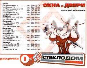 - безусловно, одним из главных конкурентных преимуществ компании является самая широкая сеть офисов в г.Перми (21 офис в различных районах города). Принцип «близко к дому», а также работа офисов не только в будние дни, но и в субботу (у конкурентов этого нет) – это факторы обеспечивающие конкурентоспособность продукции ООО «Стеклодом» с точки зрения формирования распределительной политики фирмы;