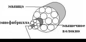 Под микроскопом видно, что миофибрилла состоит из чередующихся темных (миозин) и светлых полос (нити актина). При сокращении миофибриллы светлые участки уменьшают свою длину и при полном сокращении исчезают вовсе.