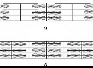 Рис.2. Сокращение миофибрилл: а) - до сокращения, б) - после сокращения.